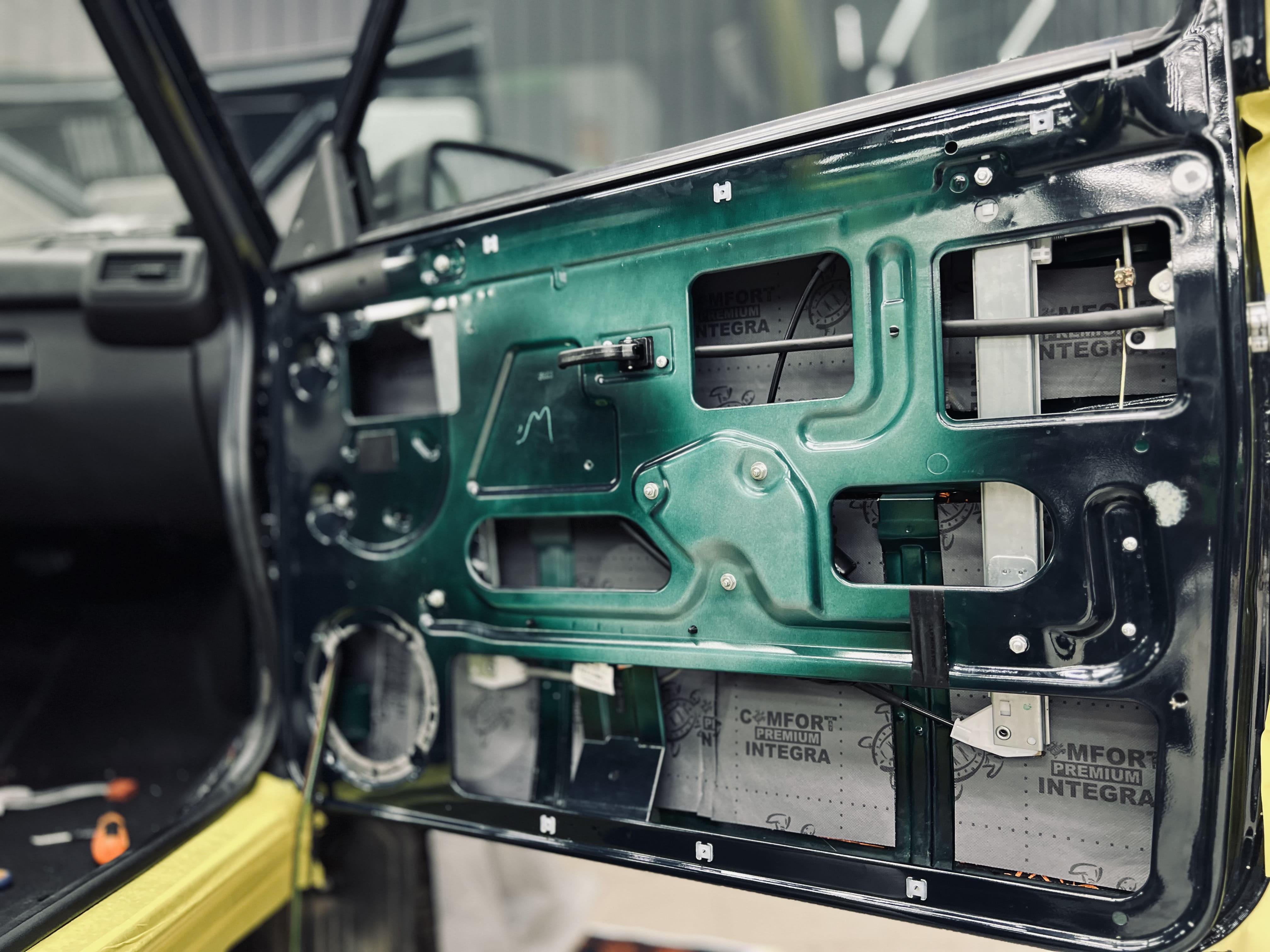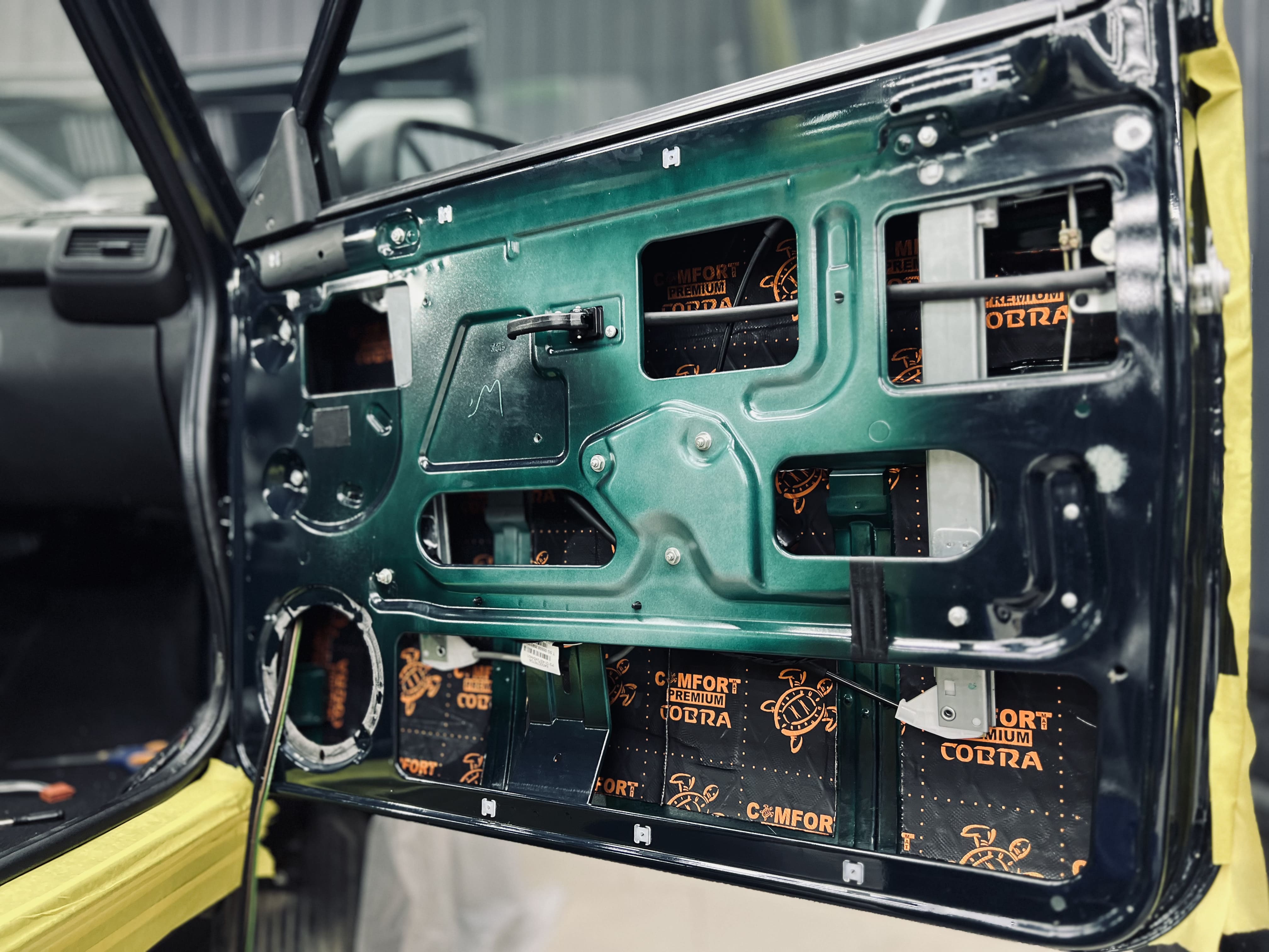 Вторым слоем на дверях использовали шумоизоляцию Comfort Mat Integra, поглощающую внешние шумы и добавляющую теплоизоляцию.
