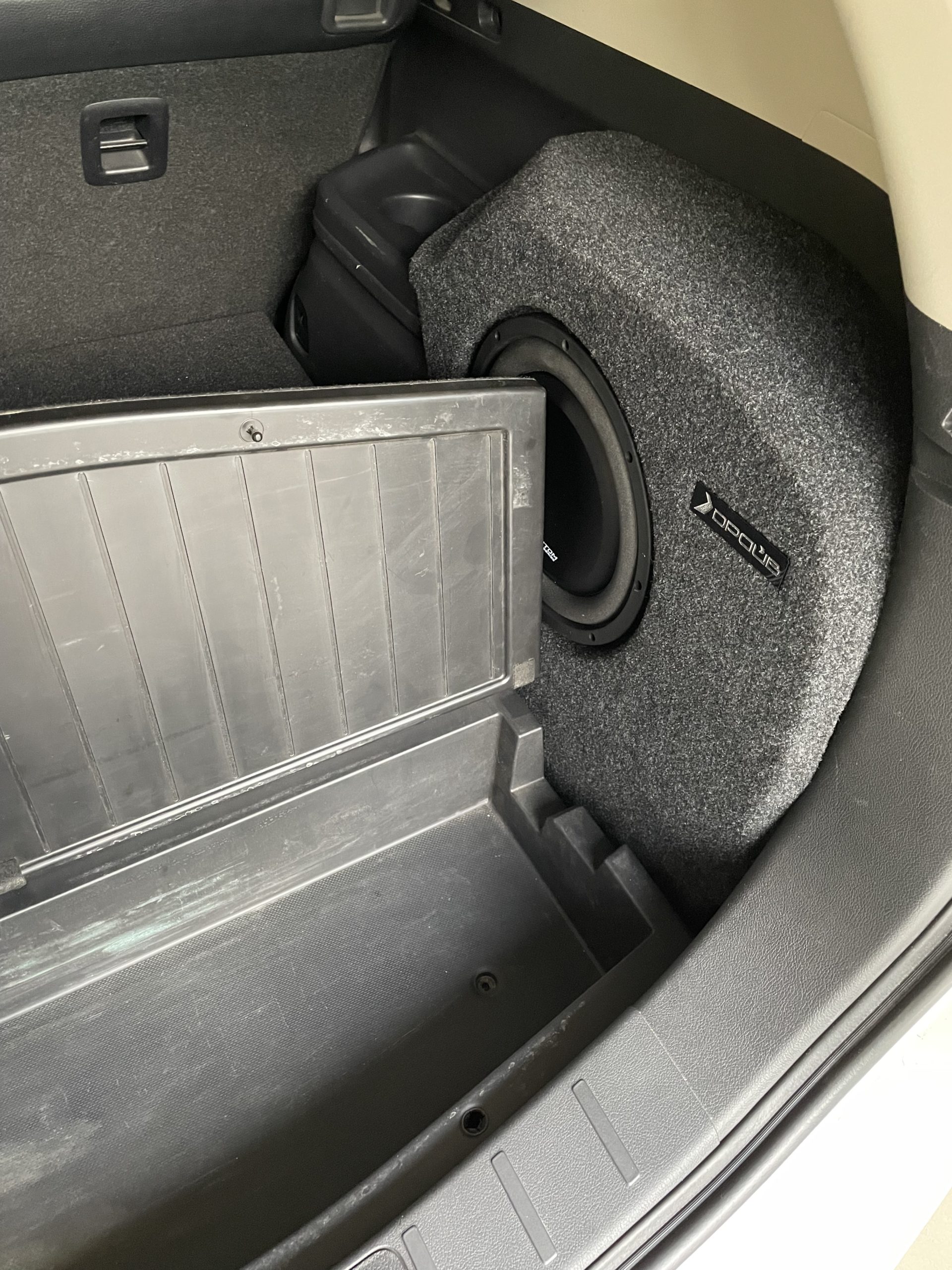 12" (30 см), Пол поднимается до выступа на коробе, 18 мм, 26.5 л, 285 мм, 164 мм (можно больше в зависимости от магнита сабвуфера), правое крыло, 320 мм